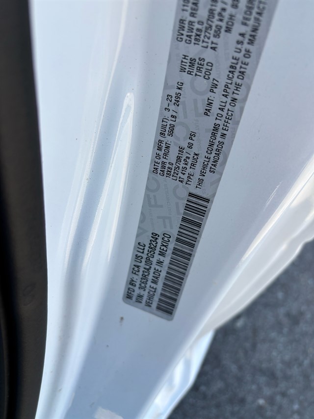 | VIN | 3C63R3AJ0PG582349 |